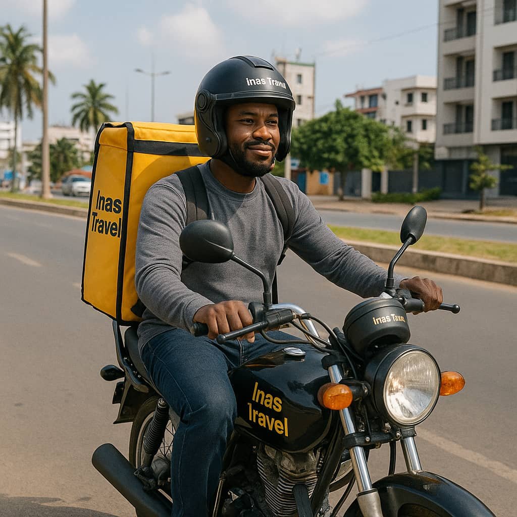Le service de livraison de Inas Travel permet d’envoyer rapidement des colis, repas ou courses d’un lieu à un autre, en toute simplicité. L’utilisateur passe commande via l’application, un livreur est automatiquement assigné, et le colis est transporté jusqu’à sa destination. Le client peut suivre le trajet en temps réel, recevoir des notifications sur l’état de la livraison, et bénéficier d’un tarif clair, souvent basé sur la distance. Ce service s’adresse aussi bien aux particuliers qu’aux commerçants, et offre une solution pratique, fiable et sécurisée pour les besoins quotidiens de livraison.