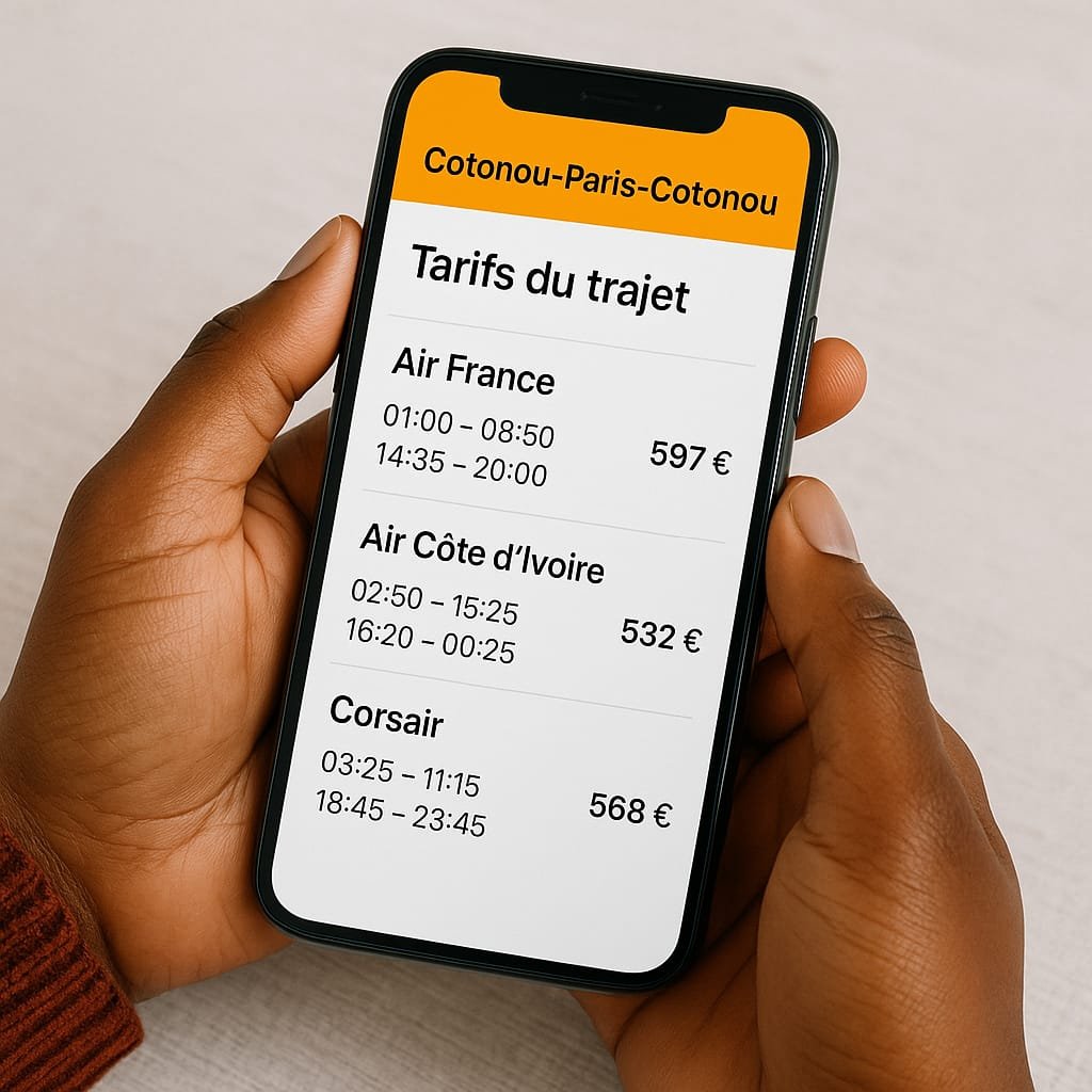 Le service Vol consiste à rechercher le tarif d’un trajet précis (par exemple Cotonou–Paris–Cotonou), en consultant les disponibilités de vols, les compagnies aériennes, les horaires et les meilleurs prix. Une fois la meilleure option trouvée, le client peut faire une réservation, puis procéder à l’achat du billet d’avion. Ce service peut se faire directement via l’application, mais aussi via WhatsApp ou par email à contact@inastravel.com. C’est une solution simple, rapide et accessible pour organiser son voyage en toute confiance avec l’assistance de l’équipe Inas Travel.